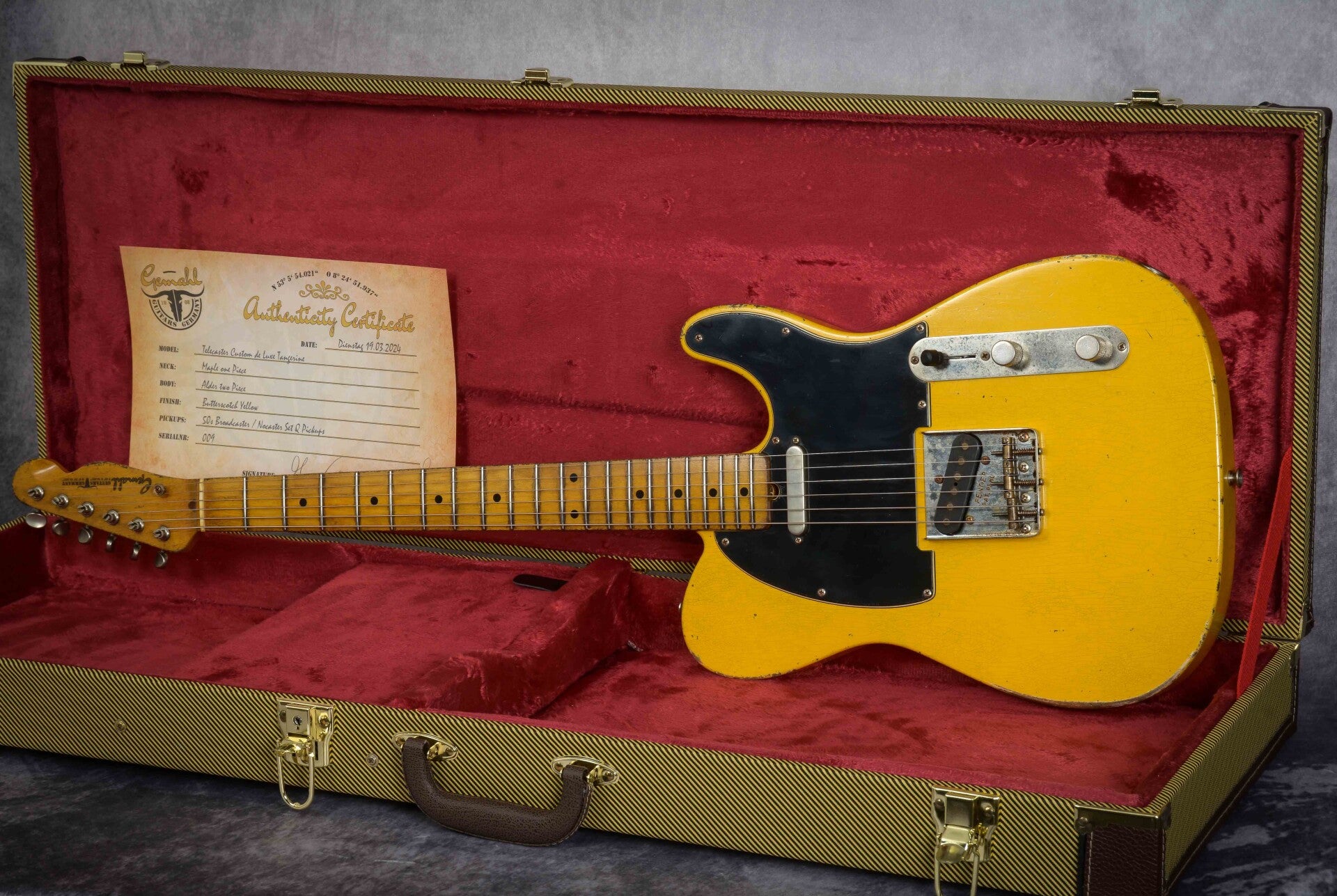 For Sale: Eine Tele im authentischen Design aus den 50gern mit einem Aged 1950 Broadcaster / 1951 Nocaster SET. All Nitro!